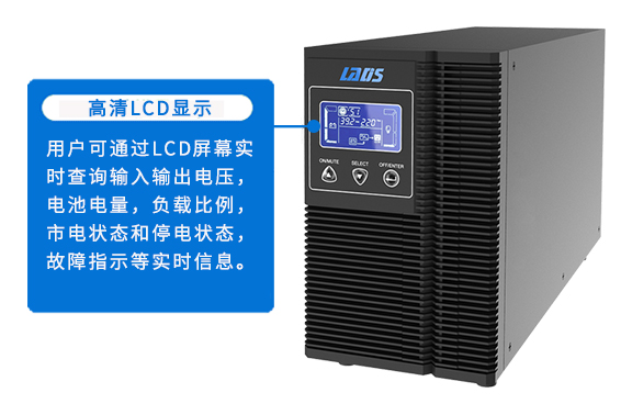 用戶可通過LCD屏幕實時查詢輸入輸出電壓,電池電量,負載比例,市電狀態和停電狀態,故障指示等實時信息。
