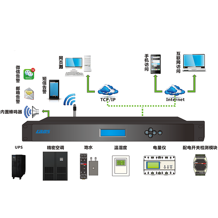 DAS-382AS型數(shù)據(jù)采集服務(wù)器采用了業(yè)界領(lǐng)先的嵌入式技術(shù)和開放的網(wǎng)絡(luò)架構(gòu)平臺,內(nèi)嵌WEB服務(wù)器、多種智能設(shè)備采集協(xié)議、12V饋電模塊、短信模塊,可適配多種傳感器以及電量儀、UPS、精密空調(diào)等智能設(shè)備,專門用于無人和少人值守現(xiàn)場內(nèi)的動力配電、環(huán)境狀態(tài)等信息的采集、監(jiān)控和管理。以此設(shè)備構(gòu)建起來的綜合運(yùn)維管理系統(tǒng)集中了現(xiàn)場數(shù)據(jù)采集、故障告警、應(yīng)急控制、WEB模式的實(shí)時(shí)數(shù)據(jù)發(fā)布。在該設(shè)備基礎(chǔ)上建立的統(tǒng)一監(jiān)控平臺可極其方便的為動力環(huán)境監(jiān)控提供一體化解決方案,不但大大簡化了現(xiàn)場監(jiān)控設(shè)備,而且有效地提高了整個(gè)監(jiān)控系統(tǒng)的穩(wěn)定性和安全性。